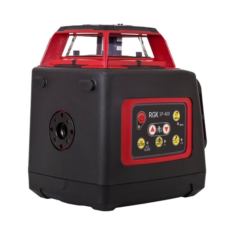 Прибор имеет два варианта исполнения: RGK SP-400 и SP-400 c красным и зеленым лучом соответственно. Лазерный уровень с лучом зеленого цвета в основном актуален при работе на больших расстояниях при необходимости визуального наблюдения луча.