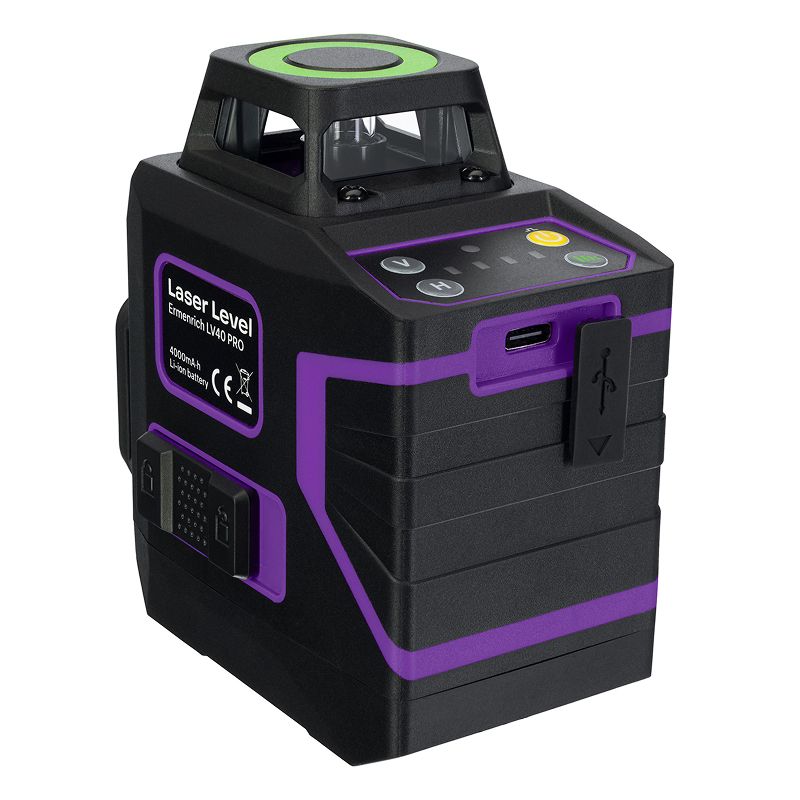 Эргономика и автономность являются сильными сторонами модели. Встроенный литиевый аккумулятор емкостью 4000 мАч обеспечивает продолжительную работу от 11 до 42 часов в зависимости от выбранного режима. Для зарядки используется современный разъем USB Type-C, что добавляет удобства. Стандартное крепление 1/4" позволяет надежно фиксировать уровень на штативе. Степень защиты IP54 гарантирует частичную защиту от пыли и брызг воды, позволяя использовать инструмент в условиях активной строительной площадки. Лазерный уровень Ermenrich PRO LV40 — это сбалансированное решение, объединяющее в себе точность, функциональность и надежность для профессионалов и требовательных мастеров.