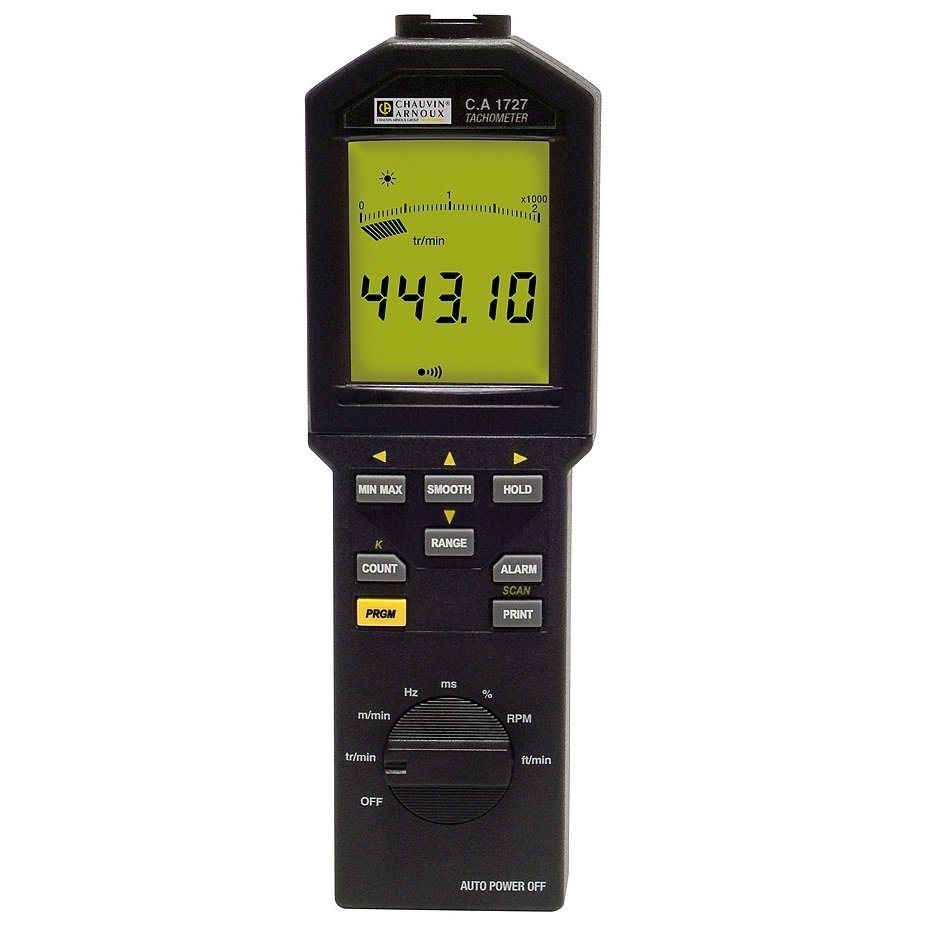 Особенности тахометра СА1727:Тахометр CA 1727 специально разработан для промышленного использования, измеряя скорость вращения любых движущихся частей контактным или дистанционным способами. Тахометр обладает многими возможностями в дополнение к обычным функциям: