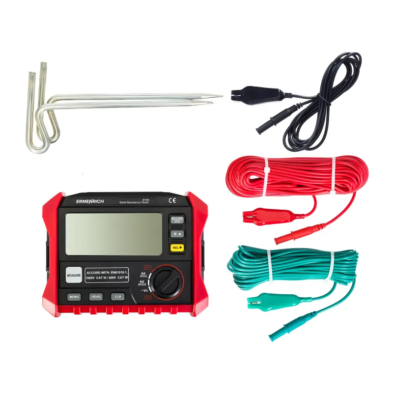 | Диапазон измерения сопротивления заземления | 0–29,99 Ом: погрешность (±2%+6), разрешение 0,01 Ом; 30–99,9 Ом: погрешность (±3%+3), разрешение 0,1 Ом; 100–999 Ом: погрешность (±3%+3), разрешение 1 Ом; 1,00–4,00 кОм: погрешность (±3%+3), разрешение 10 Ом |