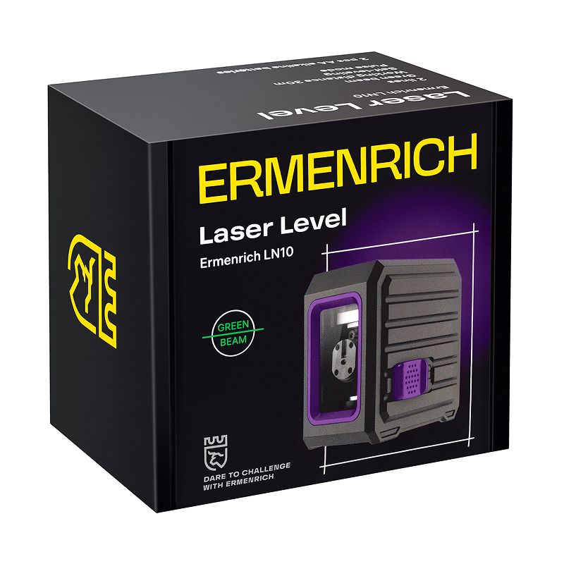 Лазерный уровень Ermenrich BASE LN10 представляет собой компактное и надежное устройство, предназначенное для точных измерений в строительстве, ремонте и отделочных работах. Этот инструмент формирует две четкие лазерные линии: одну горизонтальную и одну вертикальную, что позволяет быстро выравнивать поверхности, устанавливать перегородки или монтировать полки без лишних усилий. С помощью одной горизонтальной и одной вертикальной плоскостей проекция охватывает необходимые углы, обеспечивая простоту и универсальность в повседневном использовании.
