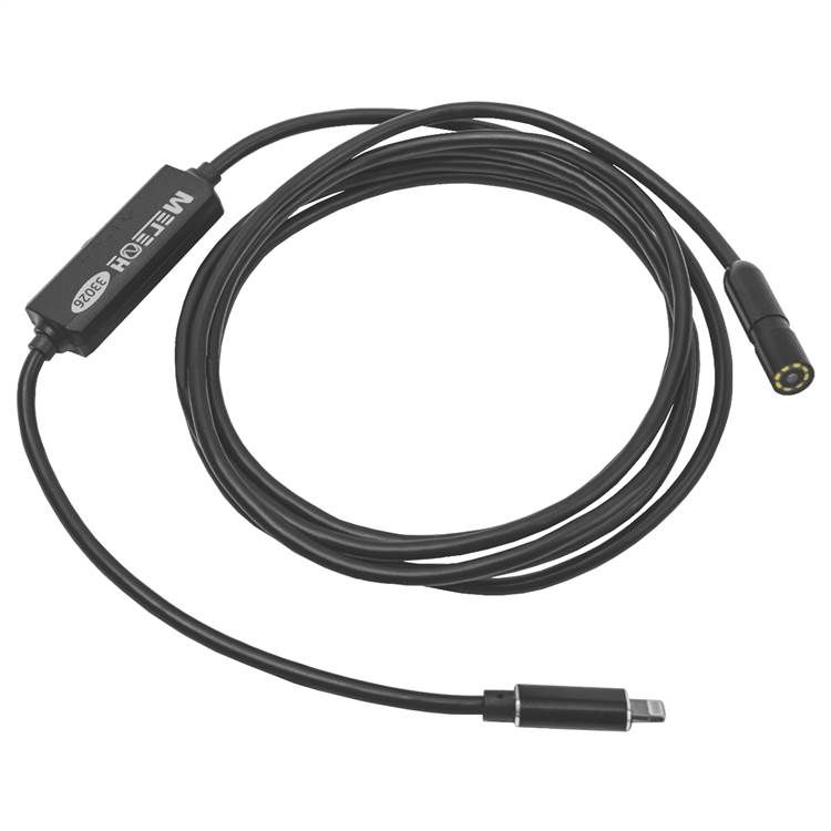 МЕГЕОН 33026 – это многофункциональный видеоскоп с камерой диаметром 8 миллиметров, мягким зондом длиной 2 метра, оснащён Lightning разъёмом, позволяющим подключать его к устройствам Apple iPhone и iPad. Видеокамера высокой чёткости с защитой (IP68), со встроенной регулируемой светодиодной подсветкой позволяет работать даже в плохоосвещенных местах. Устройство не требует источника питания, так как подключается к Lightning разъёму устройства и питается от него. Идеально подойдет для проведения визуального осмотра скрытых полостей, труднодоступных областей, внутренних частей различного оборудования без повреждения и предварительного демонтажа других элементов. Длина измерительного зонда позволяет производить визуальную ревизию систем вентиляции и трубопровода. В комплекте поставки: съёмное зеркало (перископ) для обзора по бокам, магнитный держатель и крючок для возможности извлечь упавшую деталь. В используемом ПО возможна видео- и фотофиксация изображения. Прибор найдёт широчайшее применение там, где в труднодоступных местах нужно увидеть без дополнительной разборки.