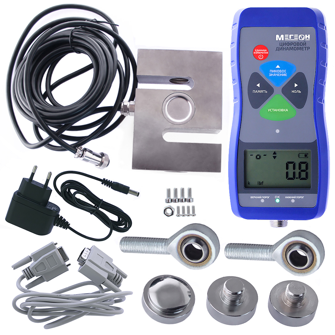 Серия цифровых динамометров МЕГЕОН 53ХХХ и МЕГЕОН 53ХХХК - это универсальные, многофункциональные и высокоточные приборы для измерения нагрузки на растяжение и сжатие. Приборы предназначены для измерения силы и с успехом могут применяться при измерении усилия вставки и разъединения, испытаниях на разрушение и иных задач. Совместное применение испытательного стенда и динамометра МЕГЕОН значительно расширяют функциональные возможности прибора. Наличие выхода управления внешними устройствами позволяет создавать автоматические комплексы. Представленный ассортимент приборов охватывают диапазон измерений силы от: 0,0001 Н до 1000 кН. Наличие коммуникационного порта USB и специального программного обеспечения позволяют автоматизировать создание протокола измерений, а также просматривать кривые силы в режиме реального времени. Динамометр внесен в государственный реестр СИ под номером 80547-20.