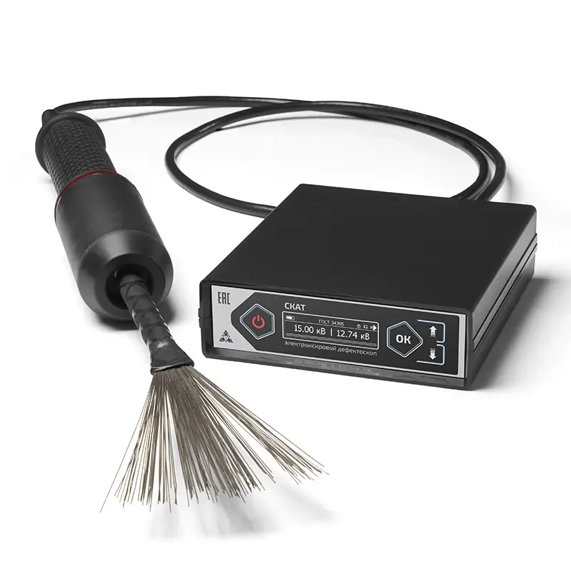 Сигнализация звуковая и световая при образовании электрического искрового пробоя в процессе контроля |
