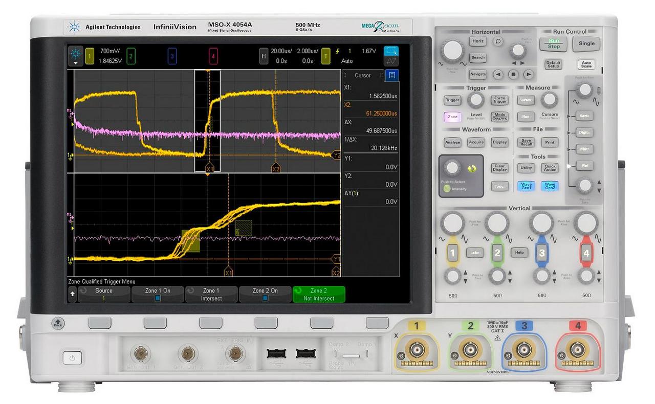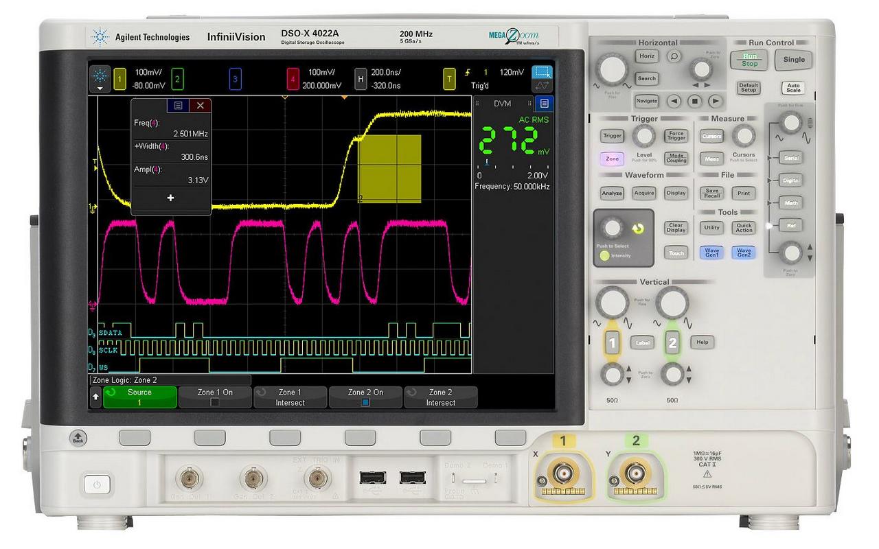 | Особенности | Скорость обновления экрана до 1.000.000 осц./сек. Расширенная синхронизация (включая ТВ-синхронизацию). Поиск и навигация. Функция запуска касанием по зоне InfiniiScan Zone. Автоматические и курсорные измерения. расширенные математические функции, БФП. Подключение внешнего монитора (VGA выход). Режим сегментированной памяти. Опции - генератор сигналов, вольтметр, сегментированная память, допусковый контроль, декодирование протоколов последовательных шин, логический анализатор. |