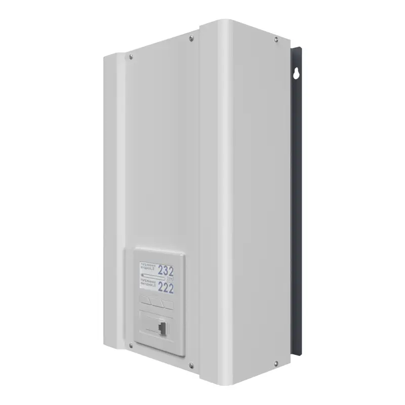 Стабилизатор рассчитан на номинальную мощность до 7 кВА, что делает его подходящим для питания как отдельных мощных приборов, так и целых групп оборудования в жилых домах, офисах или производственных помещениях. Рабочий ток достигает 32 ампер, что также говорит о его способности выдерживать значительные нагрузки. Устройство использует тиристорный тип ключей, что обеспечивает бесконтактное переключение и, как следствие, повышенную надёжность и долговечность узлов стабилизации. Электронное управление позволяет добиться высокой точности стабилизации — отклонение выходного напряжения в рабочем диапазоне составляет всего 2,7%, что полностью исключает вредное воздействие скачков на технику.