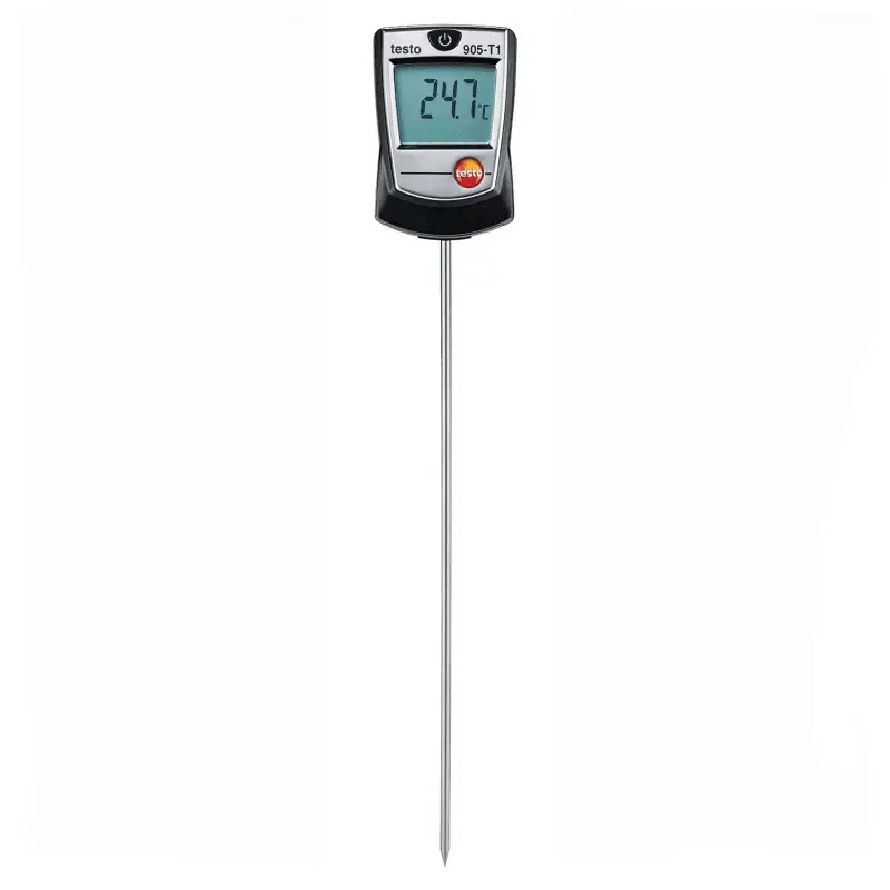 Термометр testo 905-T1 является одним из самых быстрых мини-термометров с широким измерительным диапазоном от -50 до +350 °C. Его можно использовать для краткосрочных измерений (1-2 минуты) температуры до +500 °C. Очень важно знать, что в верхней части измерительного диапазона термометр testo 905-T1 более точен, чем другие термометры данного ценового диапазона.