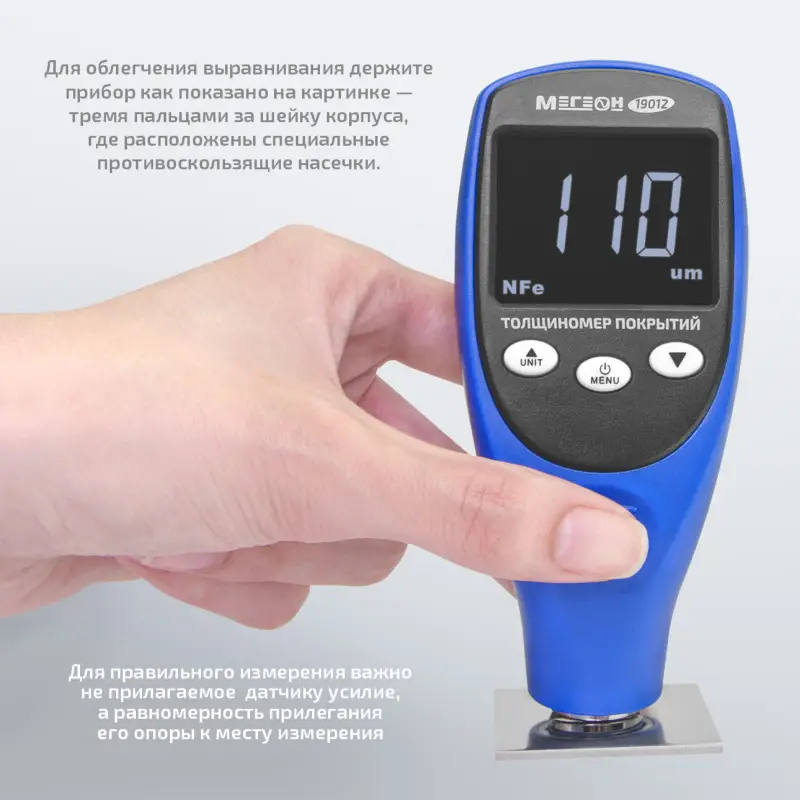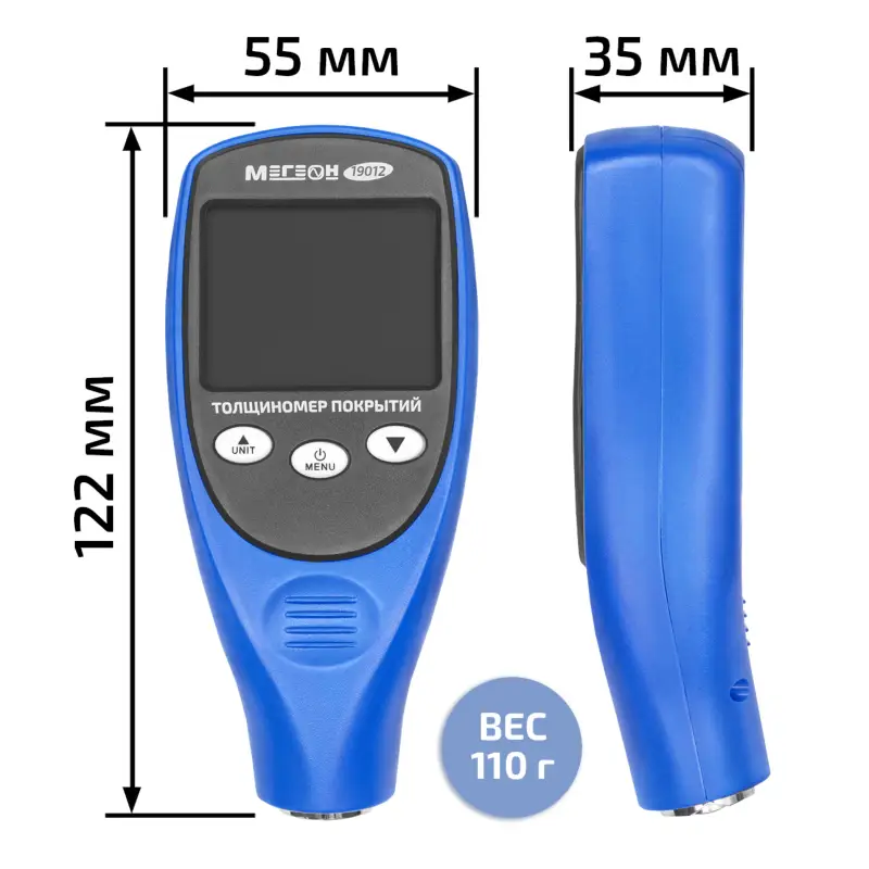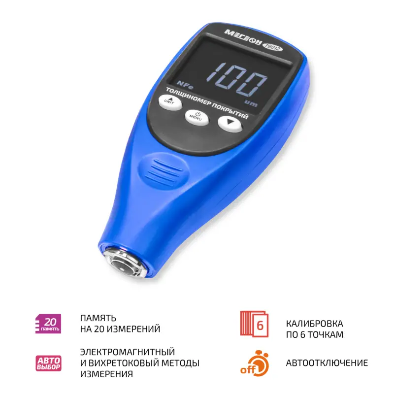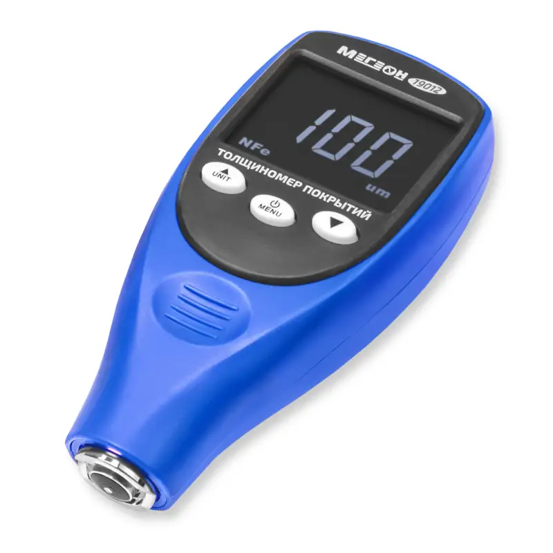 Цифровой толщиномер покрытий МЕГЕОН 19012 — это высокоточное измерительное устройство, предназначенное для определения толщины лакокрасочных и других немагнитных покрытий на металлических поверхностях. Прибор сочетает в себе современные технологии электромагнитного и вихретокового методов измерения с возможностью автоматического выбора наиболее подходящего способа в зависимости от типа основания. Это делает его универсальным инструментом, применимым как на ферромагнитных (например, сталь), так и на цветных металлах (таких как алюминий или медь).