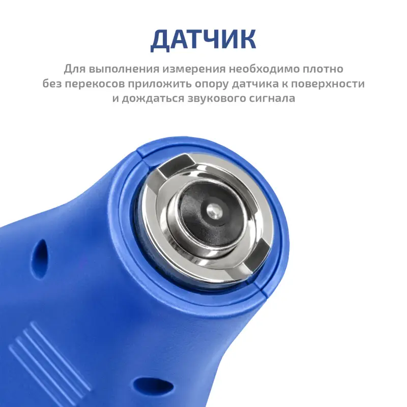 Толщиномер обеспечивает широкий диапазон измерений — от 0 до 1700 микрометров, что позволяет использовать его в различных сферах: от строительства и ремонта до промышленного контроля качества покрытий. Устройство обладает высоким разрешением, которое составляет 0,1 мкм на малых толщинах и 1 мкм — на больших, что гарантирует точные и детализированные показания даже при минимальной толщине нанесенного слоя. Погрешность измерений при этом остаётся на приемлемом уровне и составляет ±(0,03∙H + 2 мкм), где H — текущее значение толщины.
