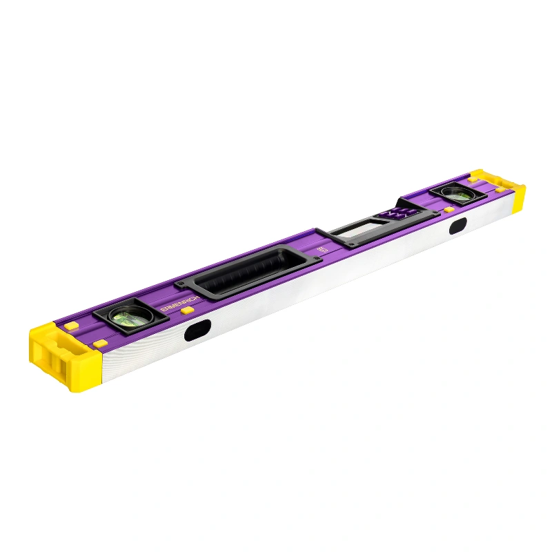 Цифровой уровень Ermenrich Verk LY60 фиолетовый создан для точной проверки плоскостей при монтаже, отделке и обслуживании инженерных систем. Длина 600 мм обеспечивает баланс между удобством в тесных зонах и стабильностью на протяженных участках, поэтому инструмент одинаково точно помогает измерять каркасы, направляющие, дверные и оконные блоки, а также контролировать уклон на трассах коммуникаций.